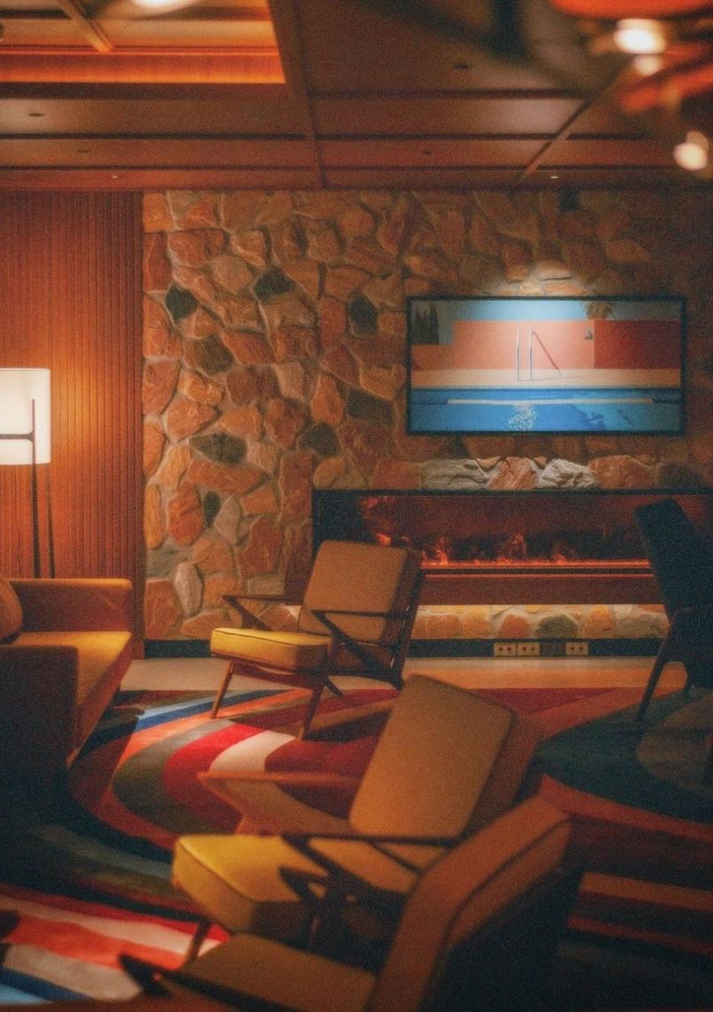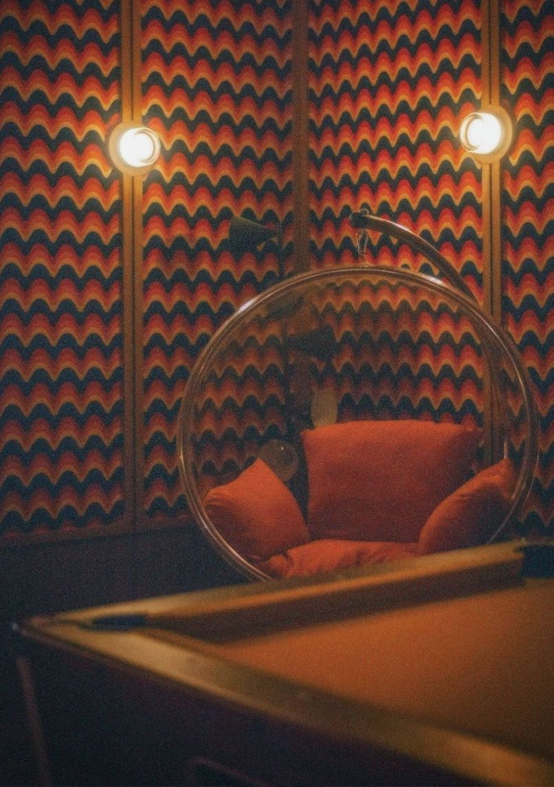 Designed to recreate a 1970s New York City penthouse apartment, this multi-room venue combines mid-century modern aesthetics with carefully curated vintage elements. The space features Campbell's soup cans as decorative accents and includes a fireplace installation.