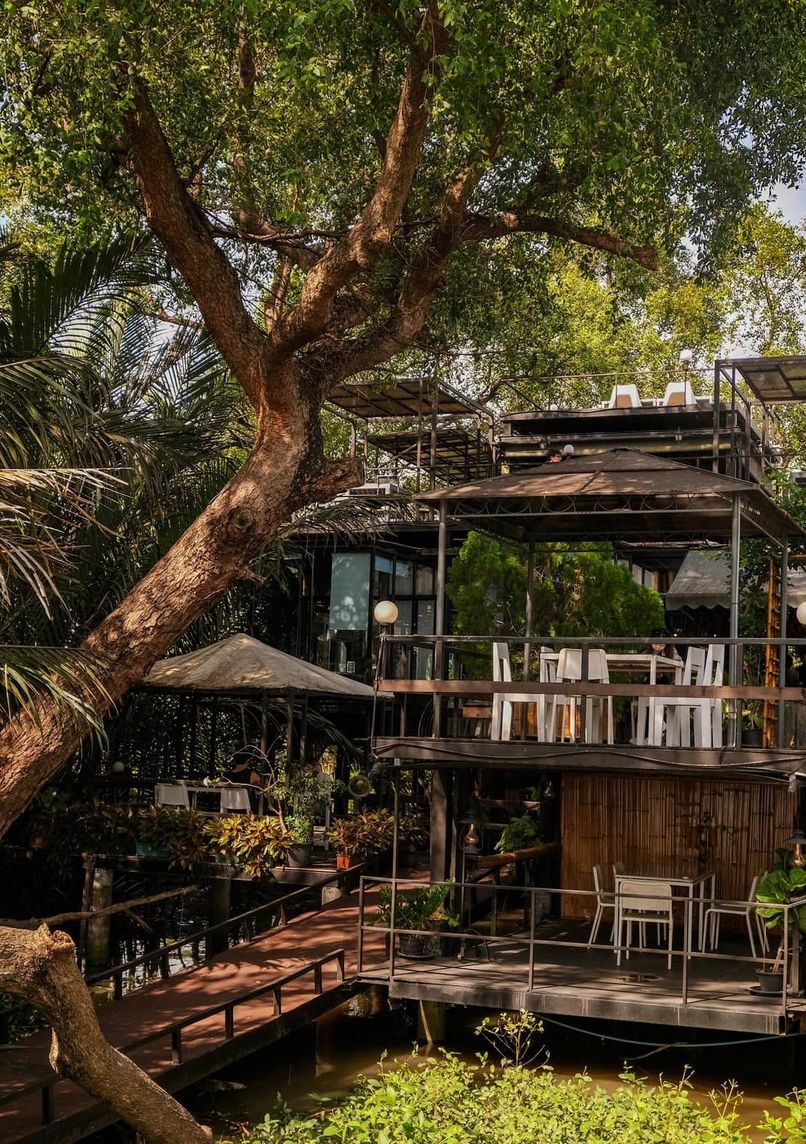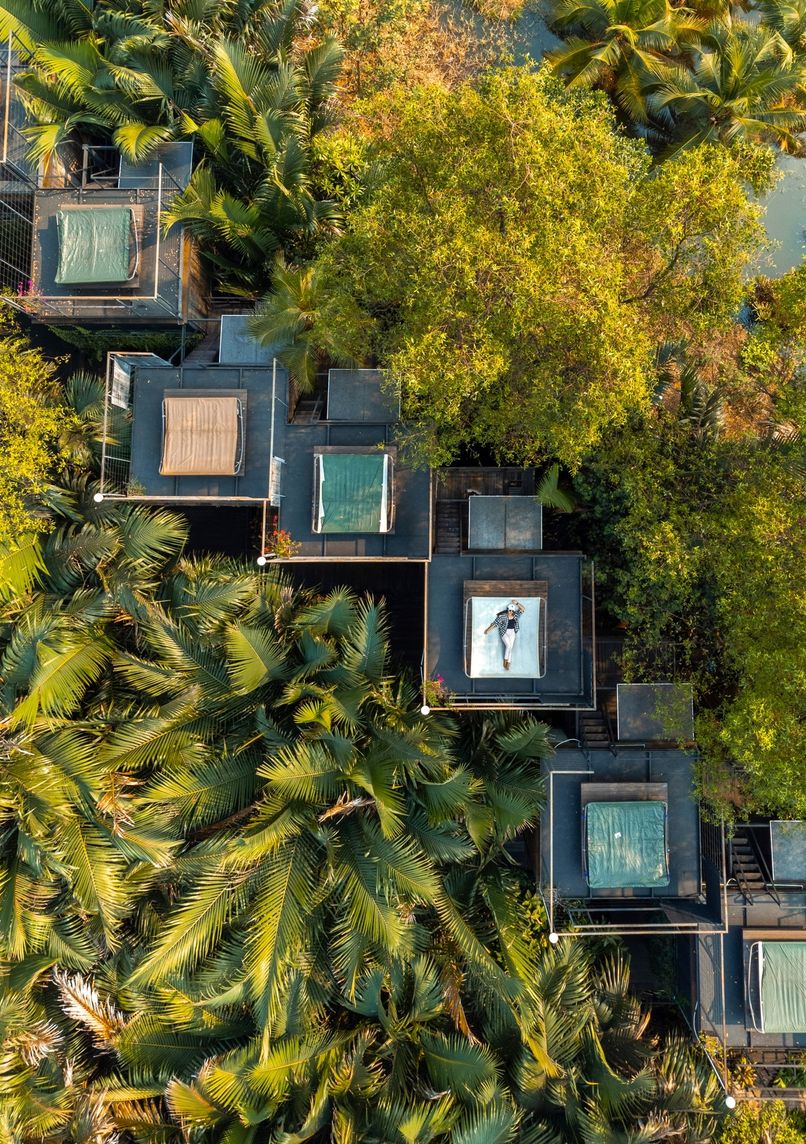 - Three-story treehouse-style structures built with sustainable materials like bamboo