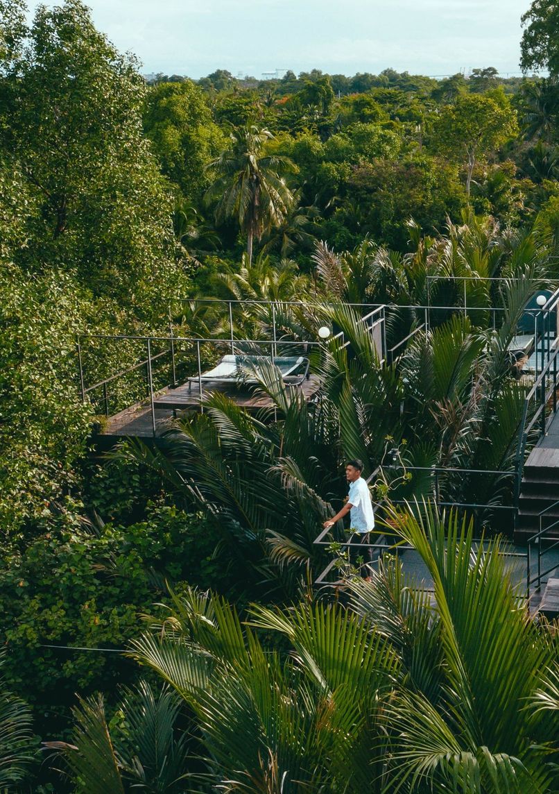 - Private roof terraces overlooking palm canopy