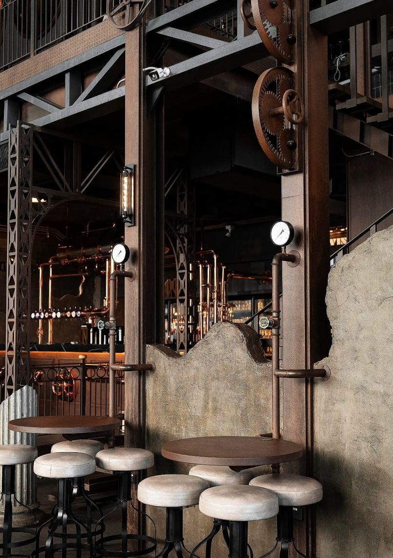 Two-story industrial-contemporary cafe featuring a steampunk aesthetic, Roman architectural elements, and life-size classical statues. Houses a specialty coffee bar and Vinsens jazz club with live music performances.