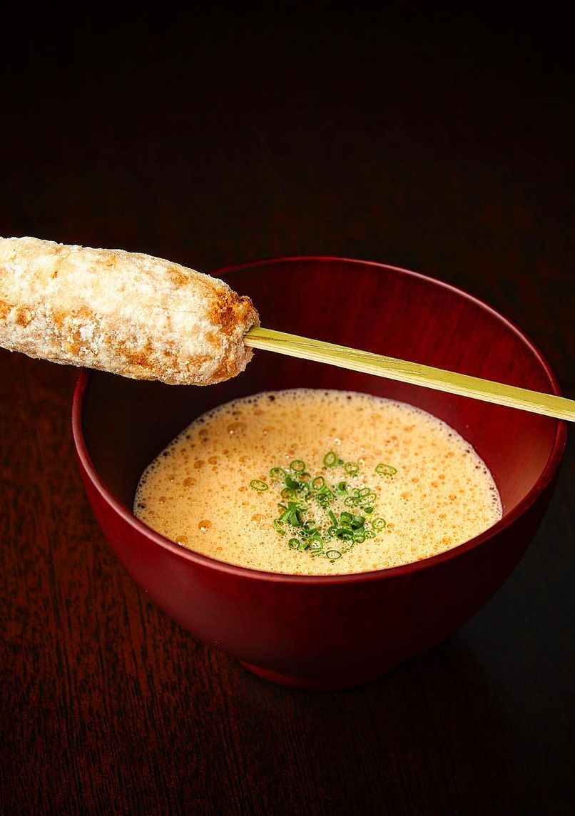 • Reimagining of kushiage (Japanese skewers) through French gastronomy lens