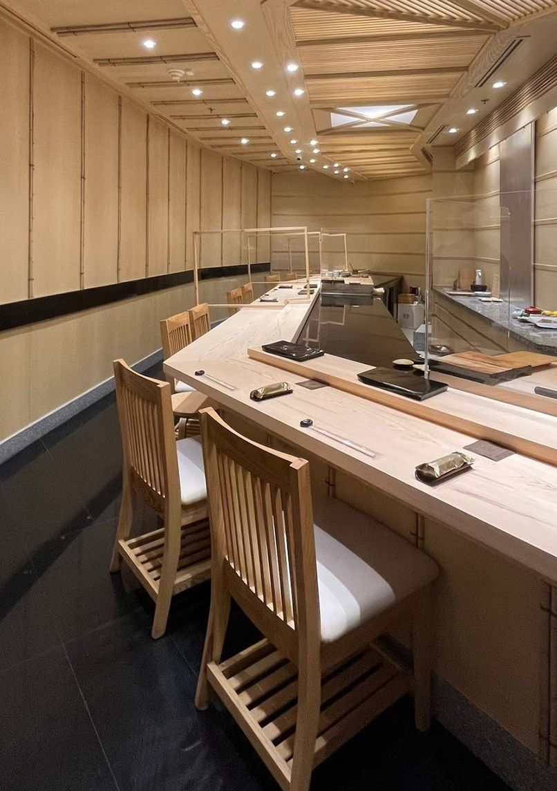 Edomae-style omakase restaurant importing fish daily from Tokyo's Toyosu Market, with a 10-year Michelin-starred legacy. Features two intimate 11-seat counter rooms crafted in hinoki wood where chefs prepare dishes in full view.