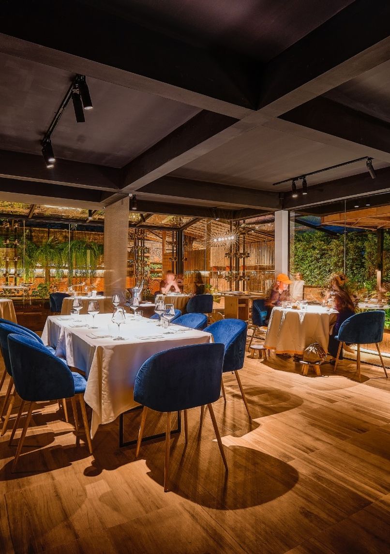 Michelin-starred urban farm restaurant pioneering zero-waste fine dining through neo-Indian cuisine. Features on-site hydroponic systems producing ingredients for innovative tasting menus that blend traditional Indian recipes with modern techniques.