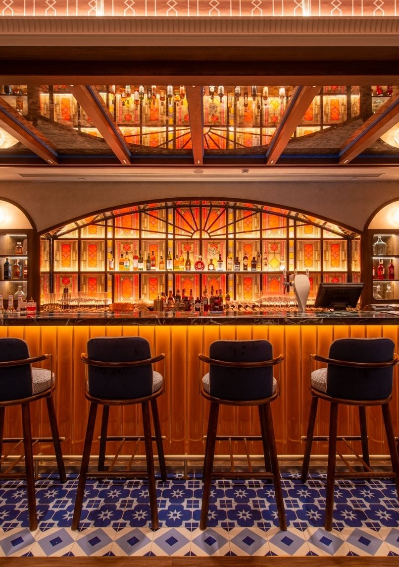 - Bar with stained glass elements