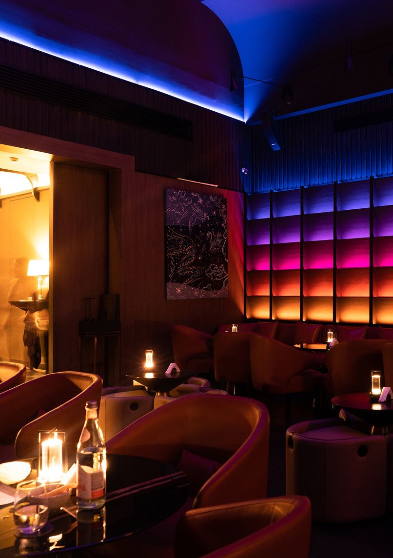 - Dimly lit interior creating intimate zones