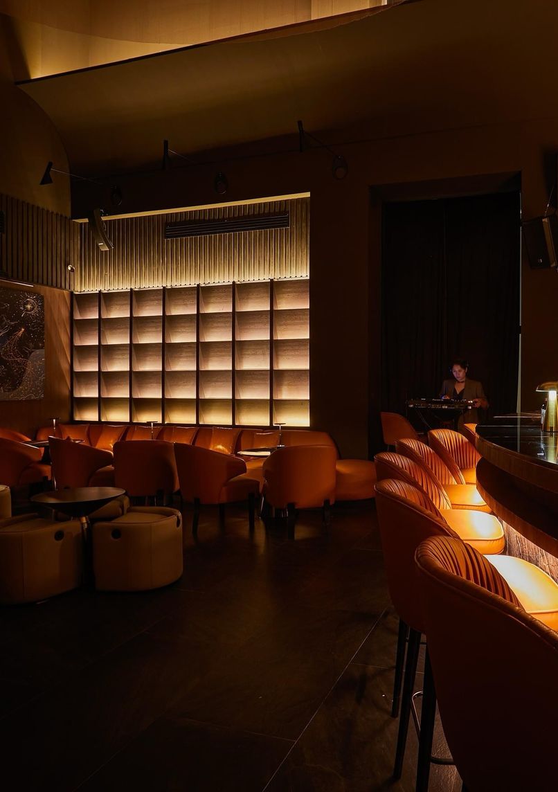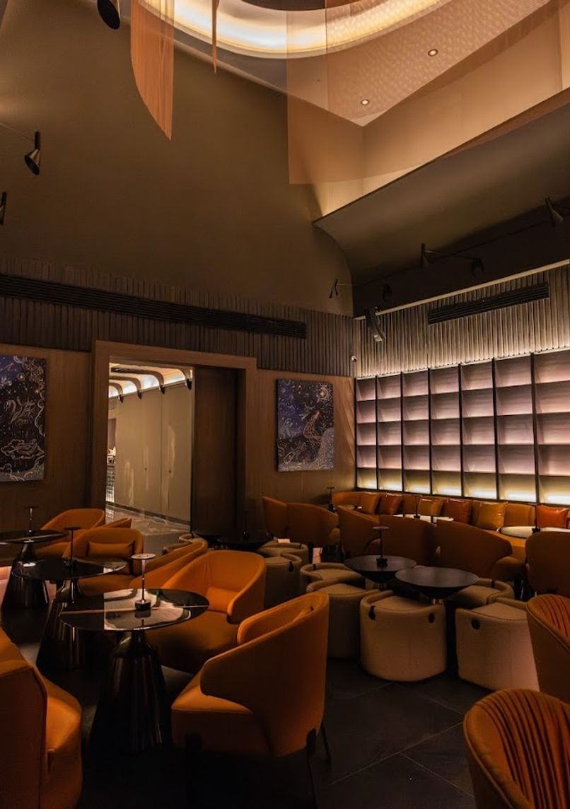 Located on the 46th floor alongside Cielo Sky Bar, this cocktail destination structures its drinks menu around atmospheric layers, with each cocktail representing a different elevation from troposphere upwards. The space combines a speakeasy aesthetic featuring chestnut leather seating with panoramic city views through floor-to-ceiling windows.