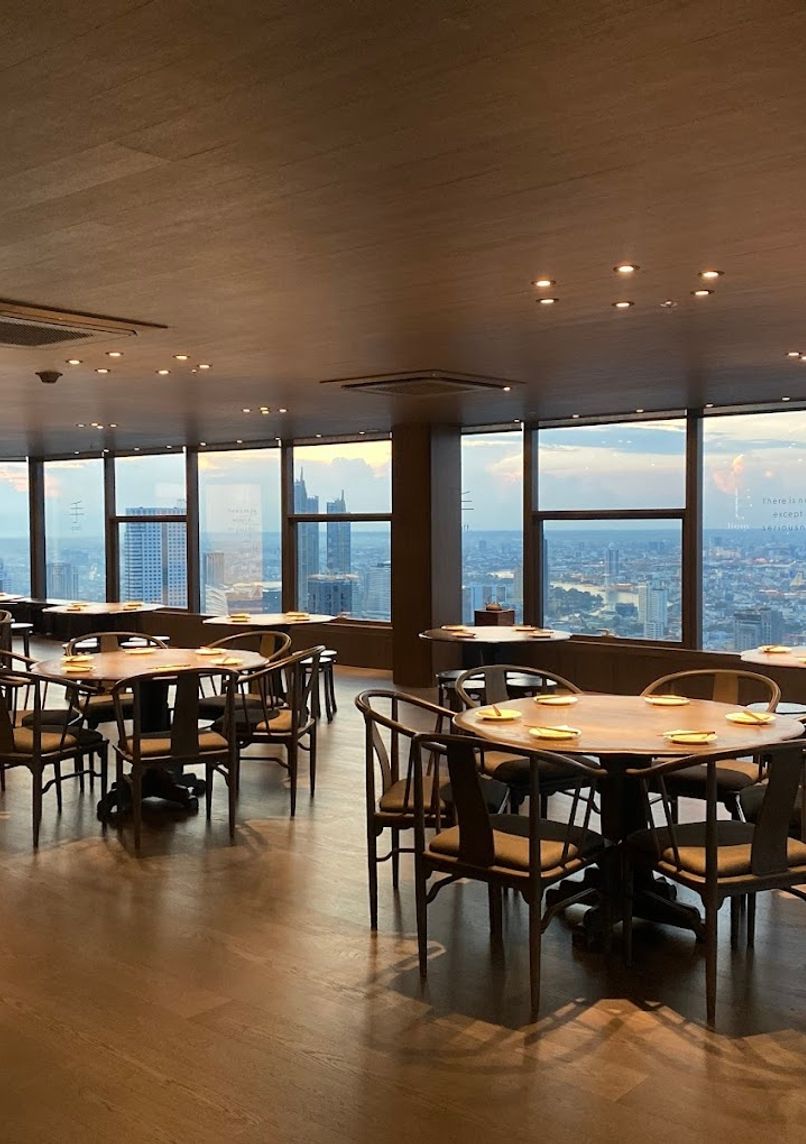 A 55th-floor culinary venue merging oriental brunch traditions with modern gastronomy. The space integrates Japanese charcoal-grilling techniques with contemporary Asian fusion cuisine, set against Bangkok's skyline through floor-to-ceiling windows.