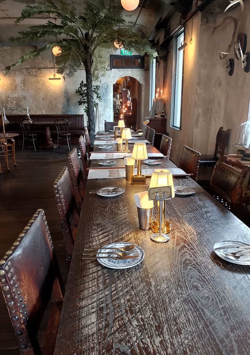 - Restaurant interior features taxidermy displays and period furnishings