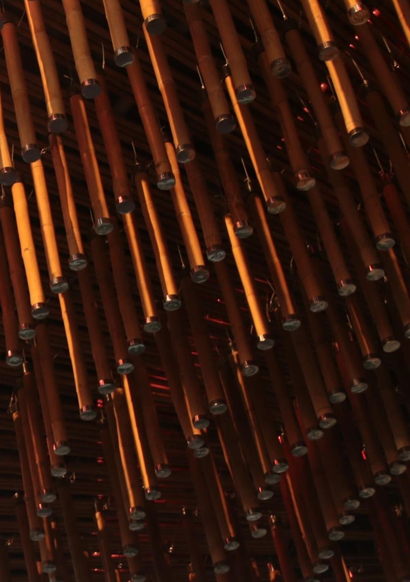 Located on the 46th-50th floors of the T-One Building, this rooftop venue integrates nature-inspired design with technological elements. The space is articulated across multiple levels connected by narrow metal open-air staircases and a glass lift system.