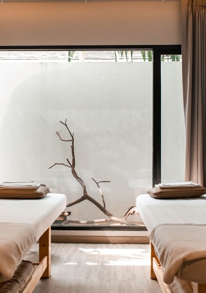 Premium wellness sanctuary offering therapeutic treatments in a minimal tropical setting. Features personalized therapies combining traditional techniques with modern approaches, including office syndrome rehabilitation and natural product treatments.