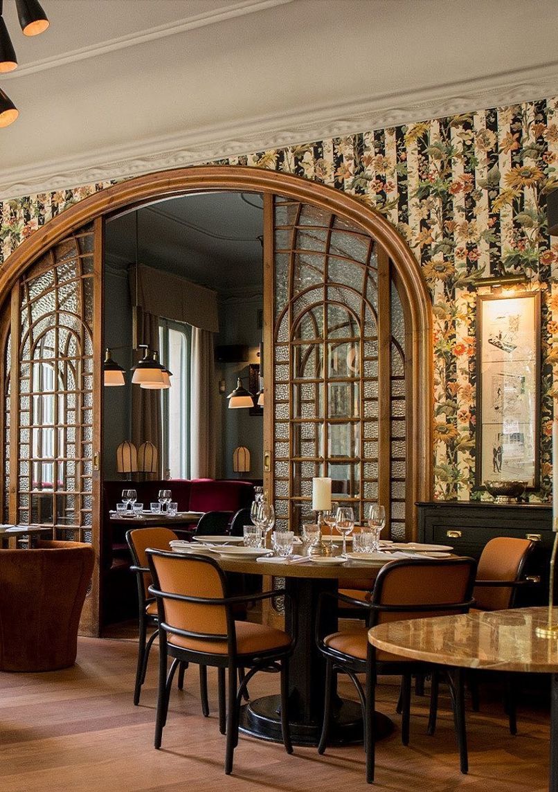 - Refined decor: mirrors, floral wallpapers, velvet accents