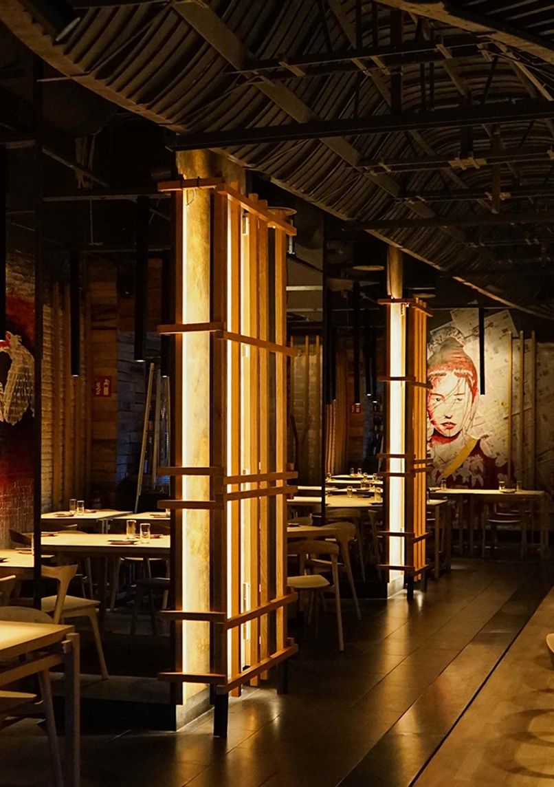 Conçu par l'architecte Txema Retana, l'espace s'inspire des izakayas de Tokyo :