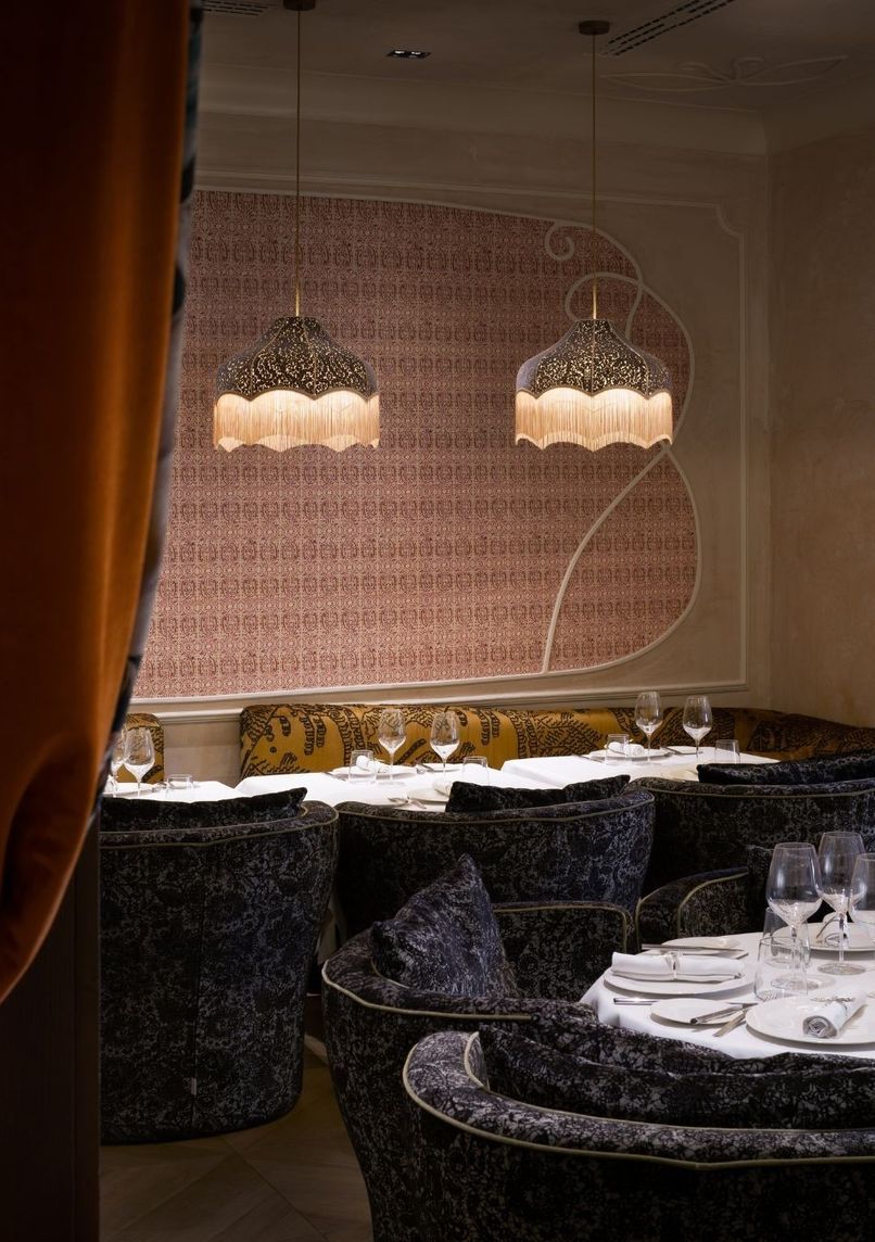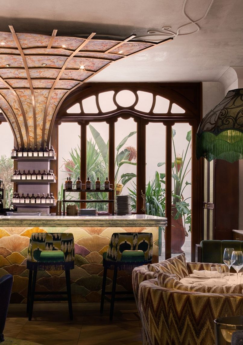Établissement multi-espaces sur trois étages à Barcelone, alliant restaurant méditerranéen, bar japonais omakase, club nocturne et bar à champagne. Design intérieur unique par Rockwell Group, mêlant Art nouveau et inspirations Picasso.