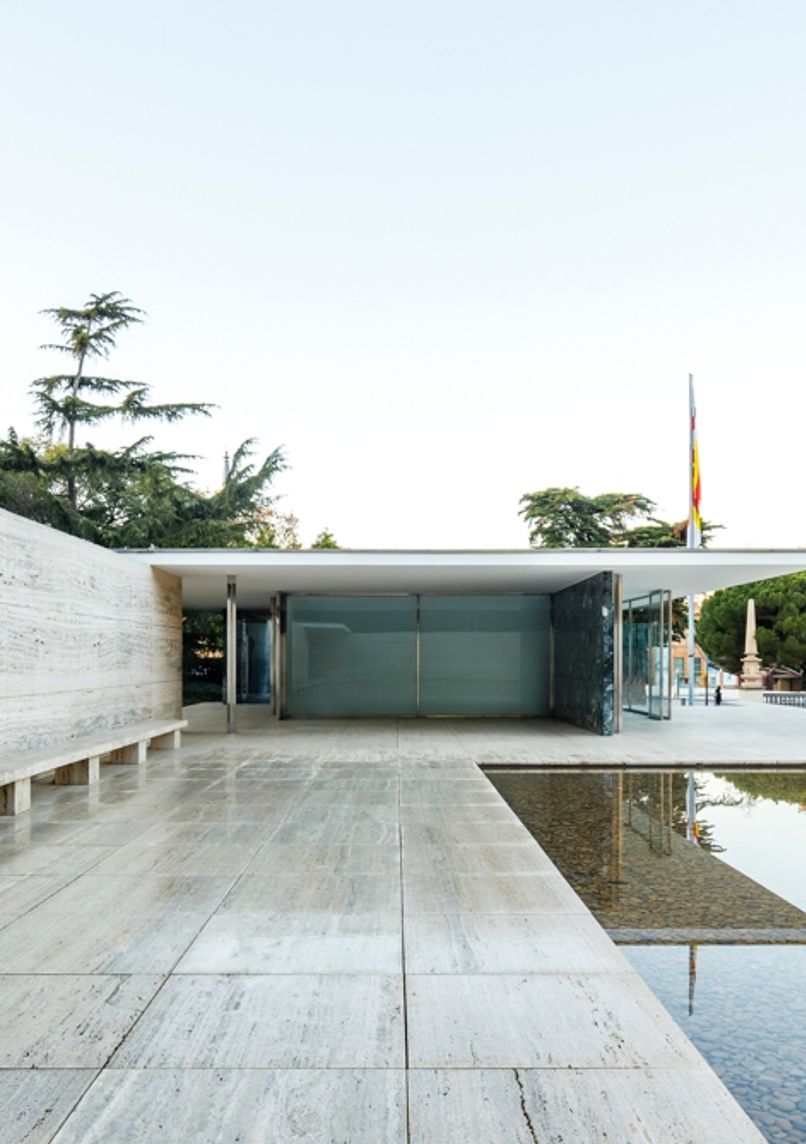 Chef-d'œuvre de l'architecture moderne conçu par Mies van der Rohe en 1929, reconstruit en 1986. Structure minimaliste en verre, acier et marbre, emblématique du style Bauhaus. Abrite la célèbre chaise Barcelona et une sculpture de Georg Kolbe.
