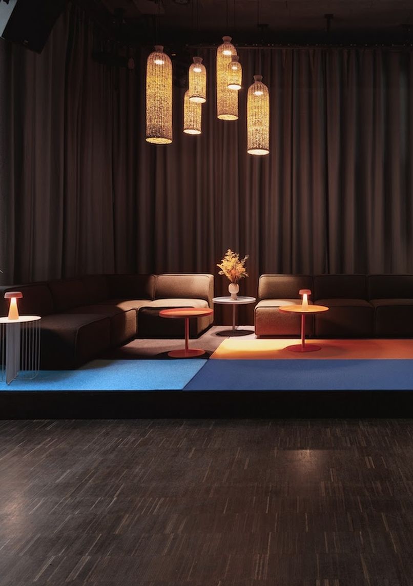 785 sqm multifunctional event space combining a 350 sqm indoor area with two hidden courtyards. Features professional 4-point sound systems and programmable lighting for versatile event configurations from fashion shows to corporate gatherings.