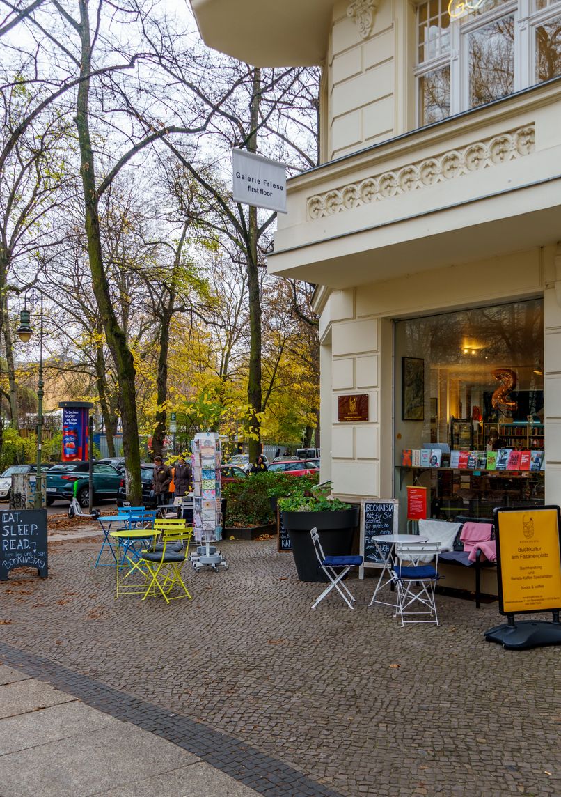 Combined bookstore and barista café founded in 2019 by a former diplomat, featuring a curated selection of literature with focus on French and children's books. The historic Fasanenplatz location was previously an art gallery.