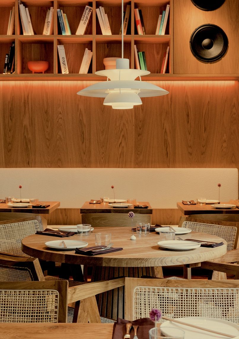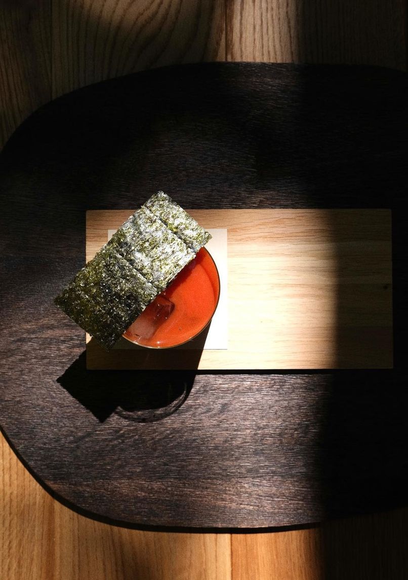 Established in 2022 in a former quarter café, this Japanese brasserie preserves historic architectural elements while introducing modern design touches. The restored interior showcases original moldings alongside Bauhaus-style furniture and lighting, creating a dialogue between the building's past and contemporary additions. A chef's counter provides direct views of the preparation area.