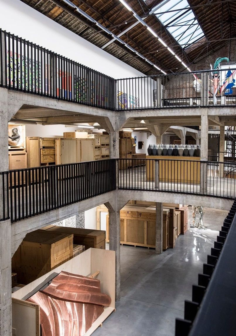 Family contemporary art collection in a 3500 m² former industrial building, showcasing diverse works by established and emerging artists since the 1970s in an innovative 'visual depot' blending aesthetics and functionality.