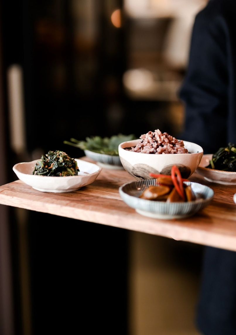 Restaurant coréen moderne proposant une cuisine innovante avec des touches fusion. Menu de 14 plats à partager mêlant recettes traditionnelles et produits locaux, dans un cadre minimaliste conçu pour la convivialité.