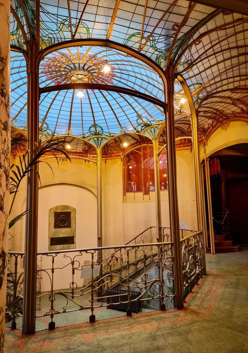 Chef-d'œuvre Art Nouveau de Victor Horta, classé UNESCO. Façade à structure métallique apparente et intérieur somptueux avec verrière-coupole restaurée. Exposition sur le lien entre colonisation et Art Nouveau.