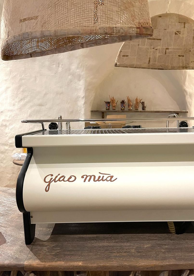 • Custom coffee portafilter door handles reflecting the venue's specialty focus