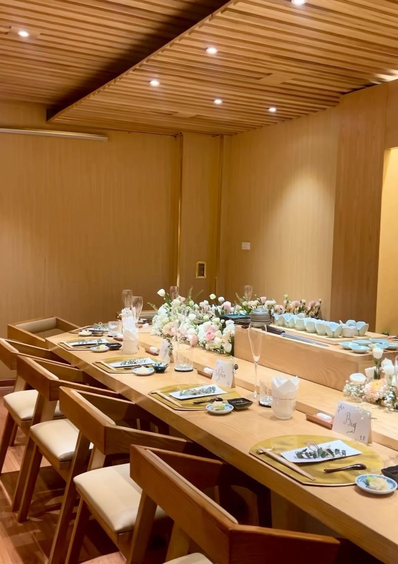 An intimate L-shaped counter sushi venue melding authentic Japanese techniques with Vietnamese craftsmanship. The space offers both counter seating and a private dining room, creating distinct experiences within a traditional Japanese interior design aesthetic.