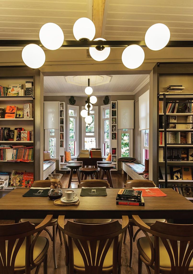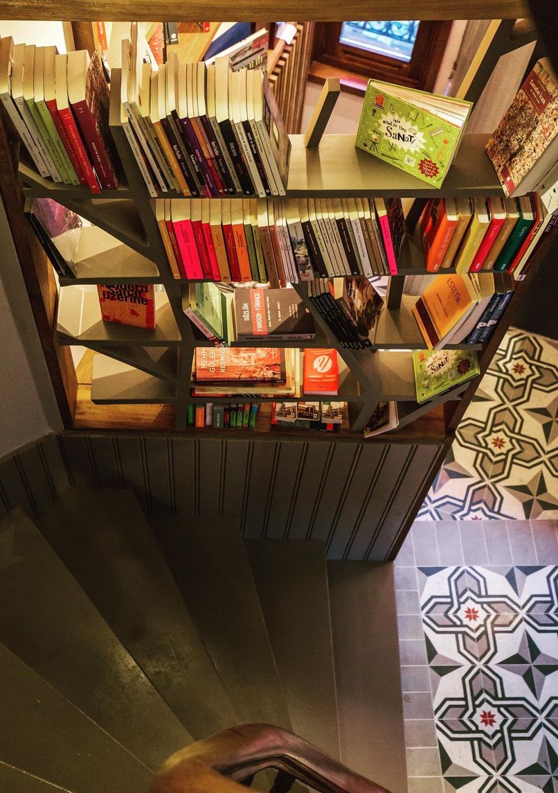 Nail Kitabevi & Cafe occupies a 19th-century Baroque and Rococo style building in Kuzguncuk, Istanbul. Formerly a hair salon, the edifice has been restored to house this two-level bookstore-café.