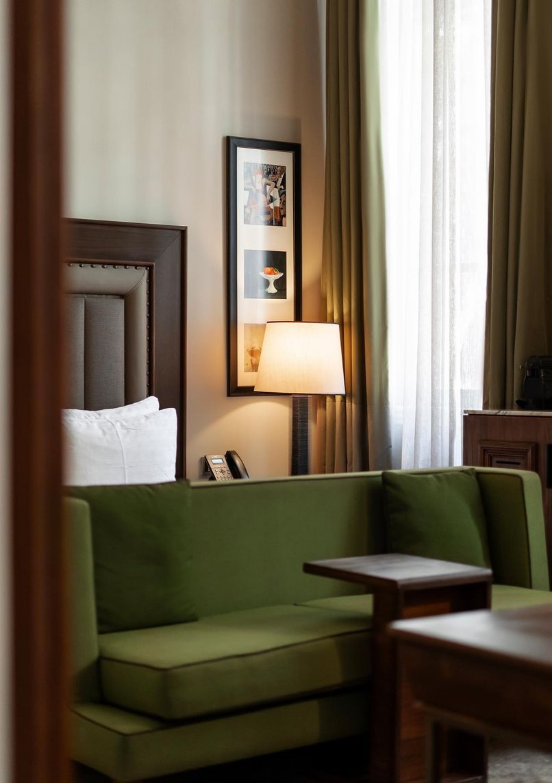 - High ceilings and marble bathrooms in rooms and suites