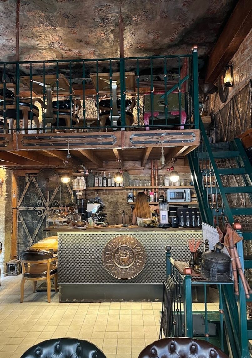 Café de spécialité dans un bâtiment historique d'Istanbul, avec décor antique et boissons innovantes. Offre un espace de travail en mezzanine et sert de musée vivant lié à l'histoire ottomane.