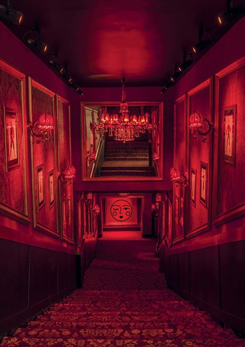 Nightclub in Marrakech blending baroque design with house music. Red velvet and wolf skin interior, resident and international DJs, crafted cocktails, and dance performances.