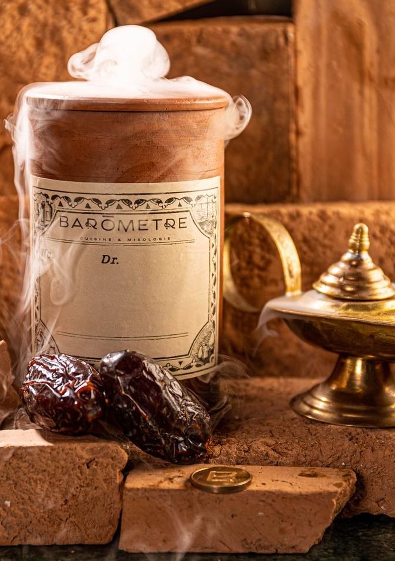 Baromètre Marrakech reinvents the cocktail bar experience in an atypical setting. Located in a basement accessible through an anonymous door, this establishment combines speakeasy codes with the atmosphere of an alchemy laboratory and a traditional spice shop.