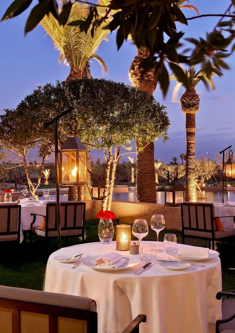 Italian restaurant at Fairmont Royal Palm Marrakech offering reimagined classic cuisine. Varied spaces including chef's table, private lounges, and Captain's Table. Central wine cellar for food-wine pairings.
