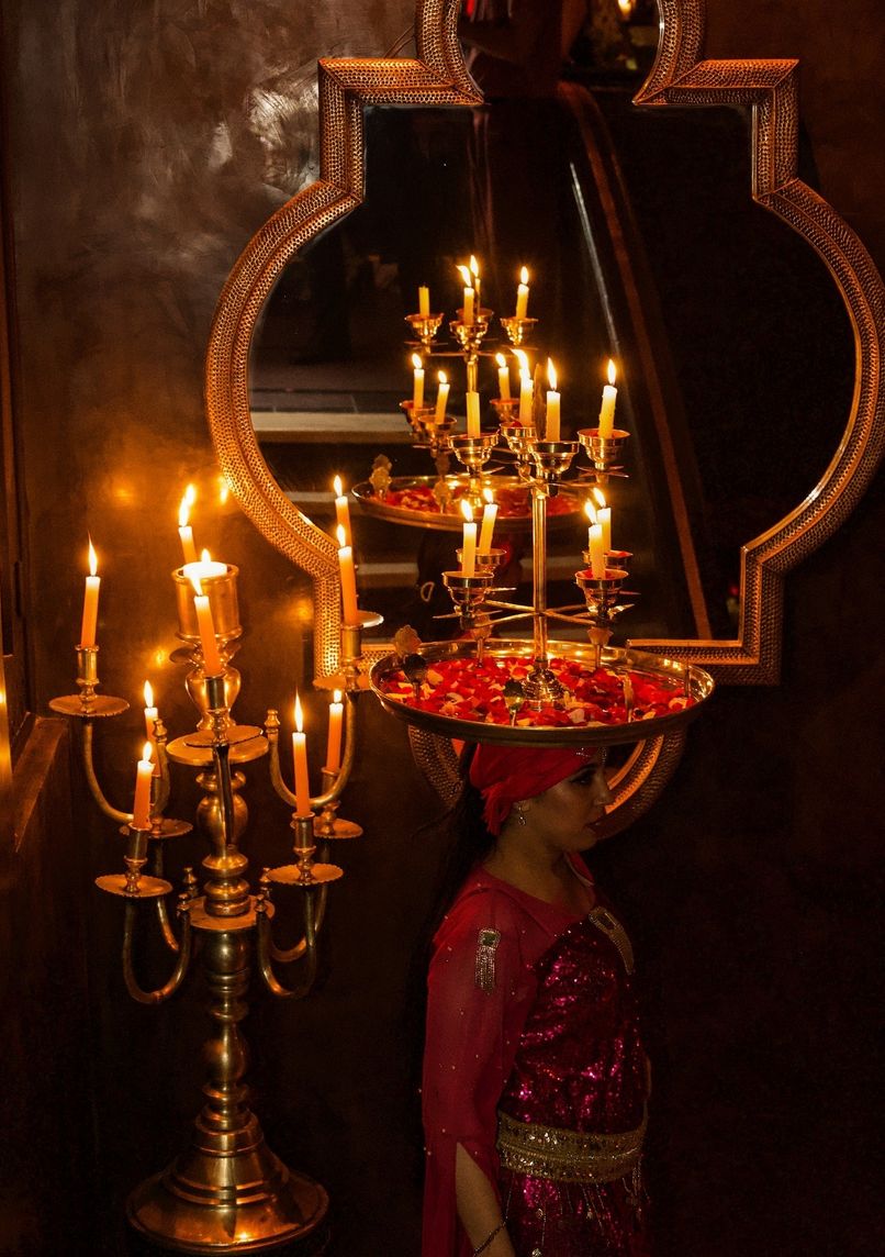 - Ambient lighting creating a warm and exotic atmosphere