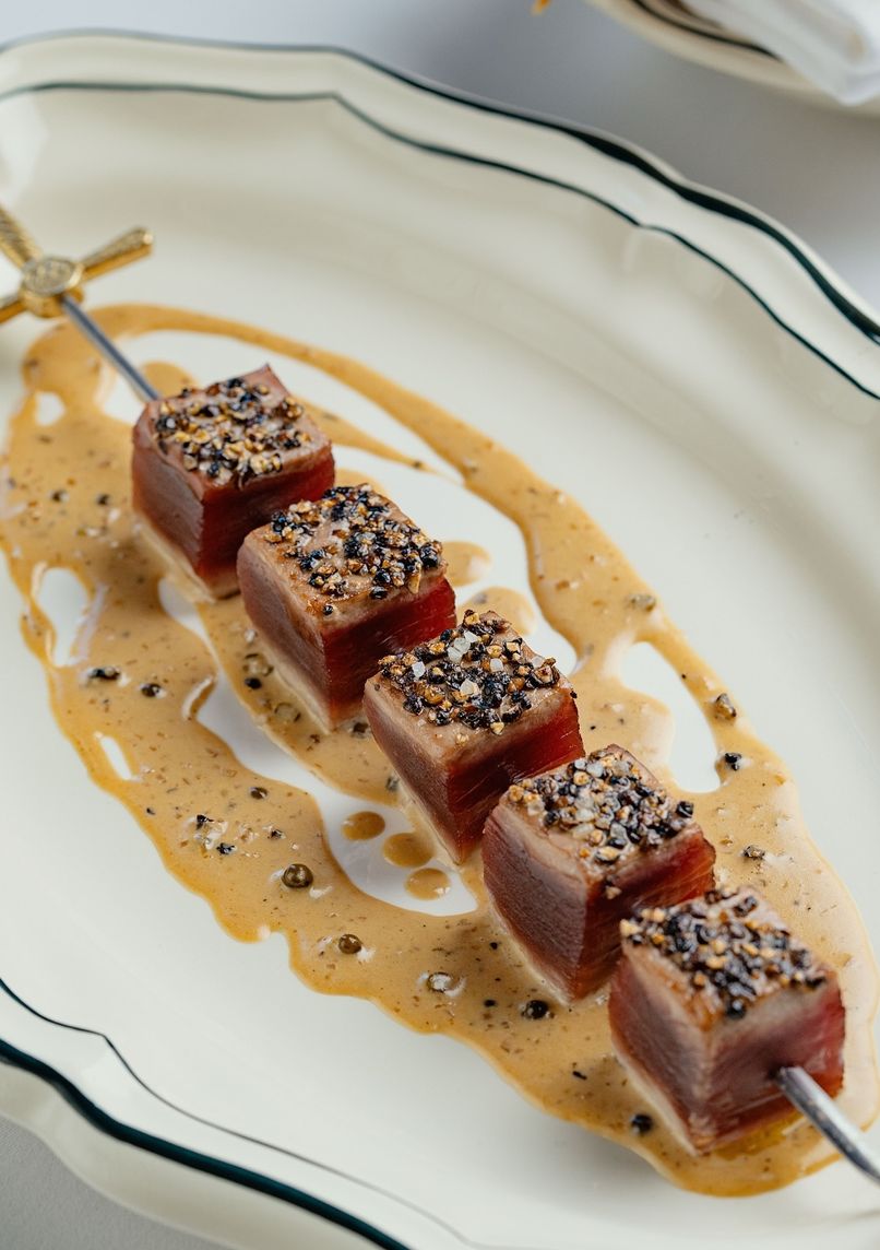 • Skewered Mediterranean bluefin tuna with pepper sauce