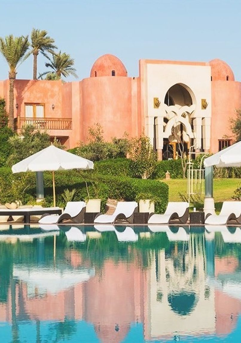 Traditional Moroccan palace on 3 hectares in the Palmeraie. 22 luxurious suites, 400 m² pool, spa, and gourmet restaurant. Hispano-Moorish architecture and decor inspired by oriental tales.