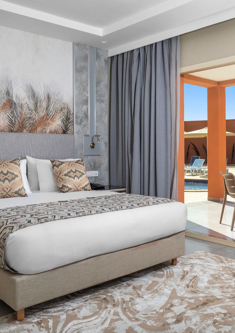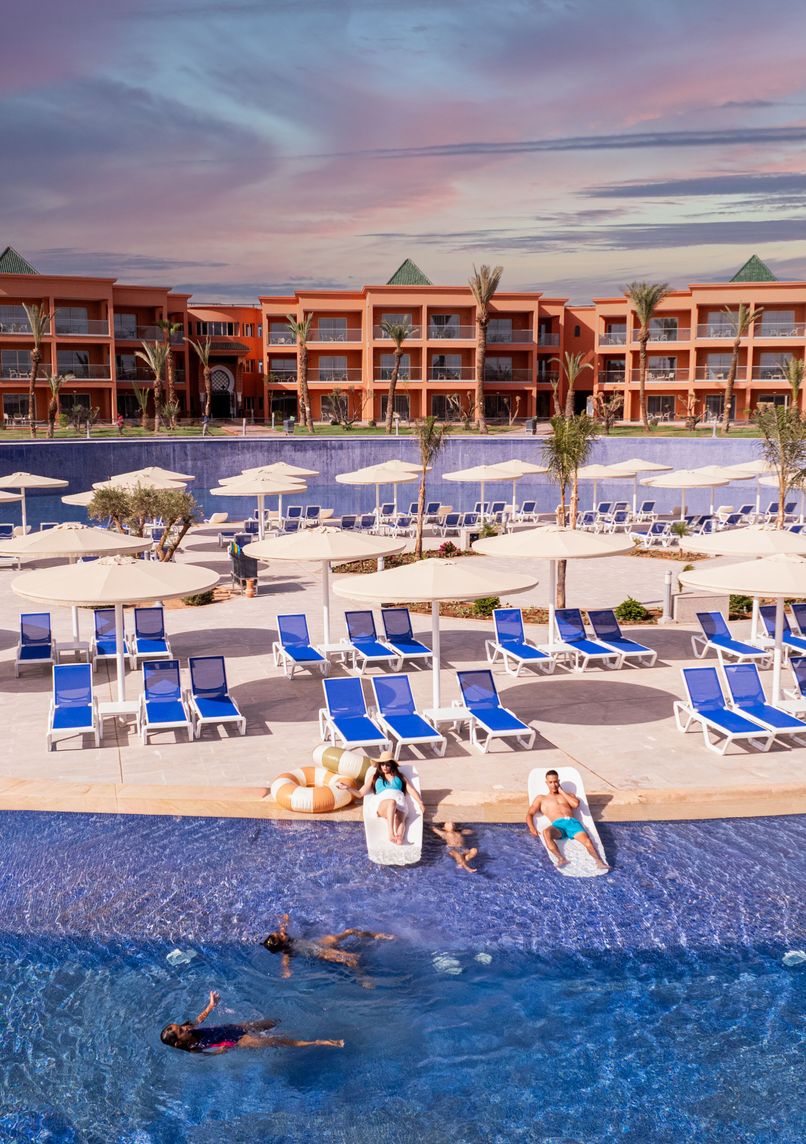 Five-star all-inclusive resort spanning 103,000 m² in the Palmeraie, offering 373 rooms and suites distributed across low-rise buildings. Features two water parks, 12 to 15 pools including a heated one, and a FIFA-standard football pitch.