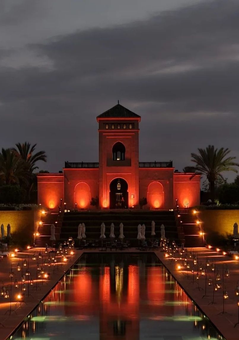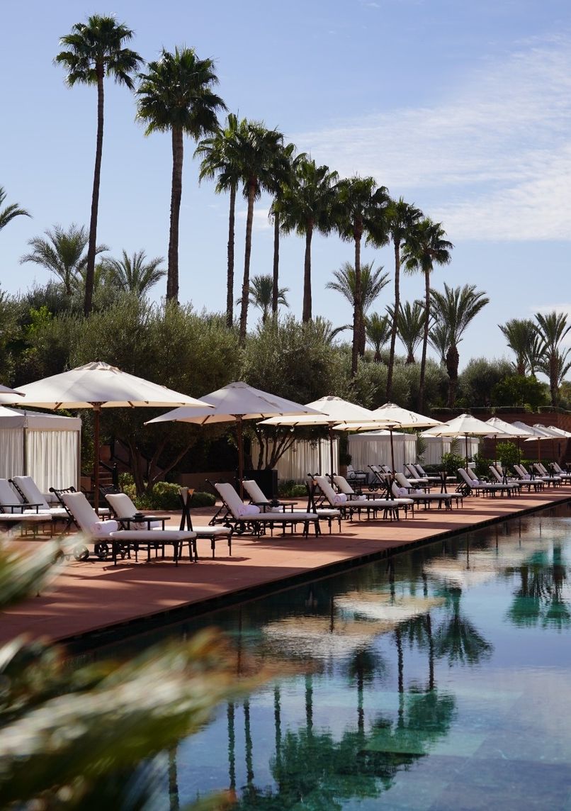 5-star luxury hotel blending traditional Moroccan architecture with Arabian thoroughbred stables. Expansive 6-hectare property featuring an 80-meter pool, Chenot spa, and gourmet restaurants, 10 minutes from the medina.