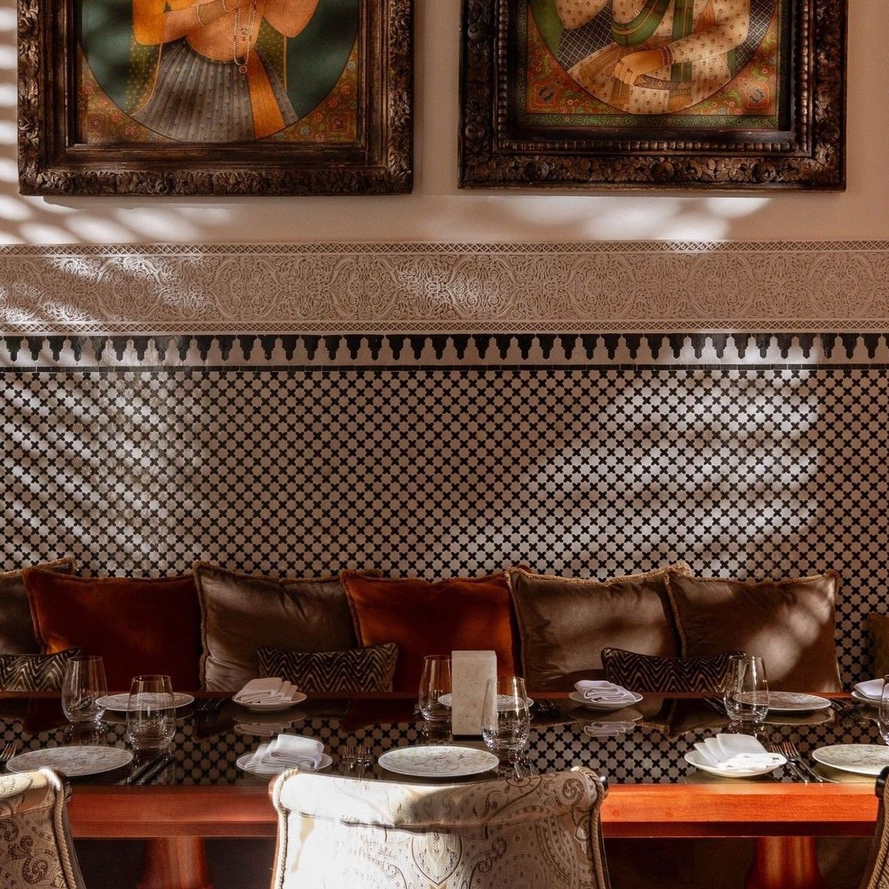 Rivayat offers a dive into a world where Indian flavors subtly meet the richness of Moroccan cuisine. In a majestic setting inspired by the Medersa Ben Youssef, you'll enjoy creative dishes orchestrated by Michelin-starred Chef Rohit Ghai. Around a central pool, tables invite relaxation while the presentation of the dishes and the warmth of the venue make the experience memorable.