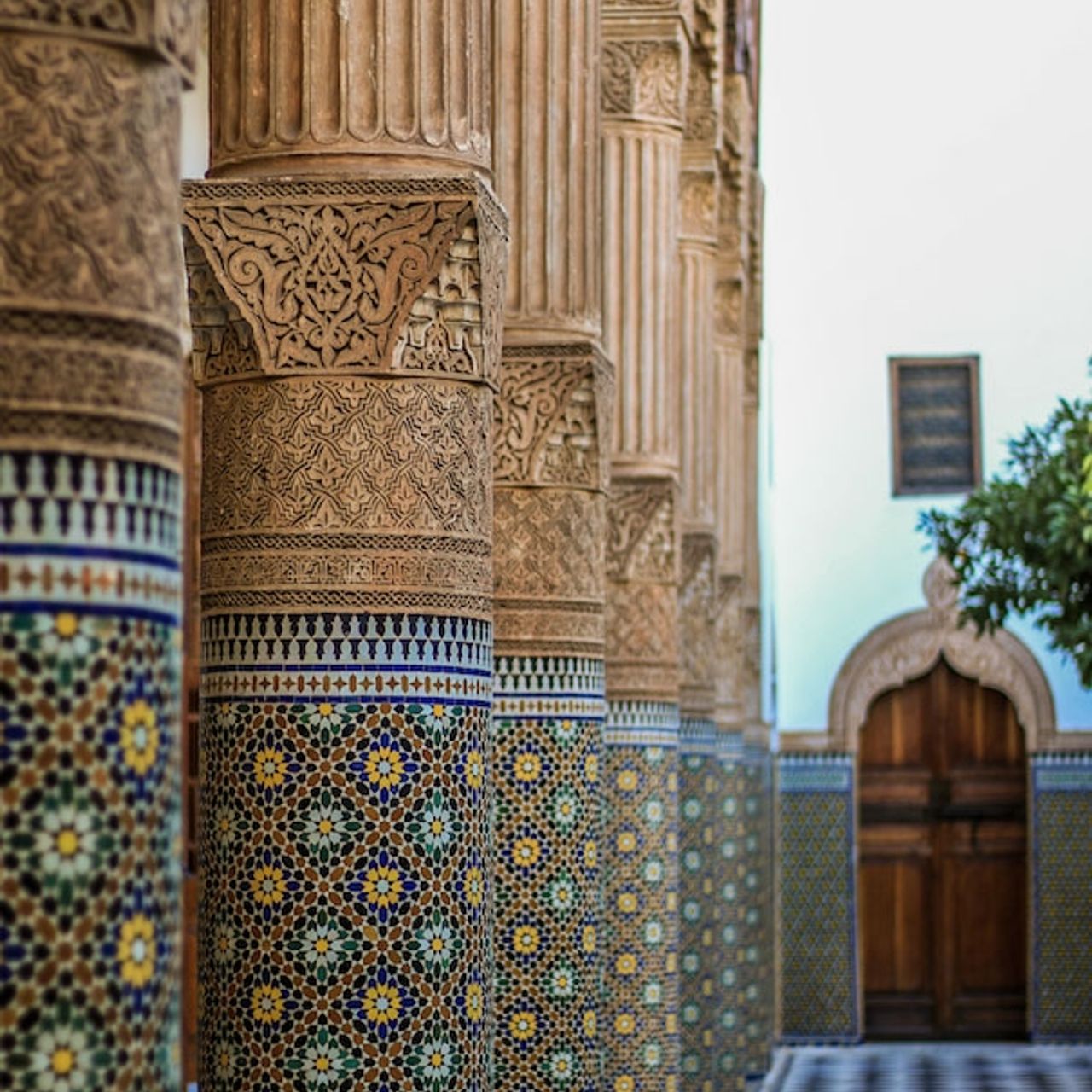 Even today, this site showcases unmatched artisanal craftsmanship. Visitors can admire Moroccan-Andalusian architecture, ceilings in various colors and shapes, doors and capitals carved and painted using natural pigments, as well as columns adorned with zellige tiles and sculpted stucco. Each room is unique. A true feast for the eyes.