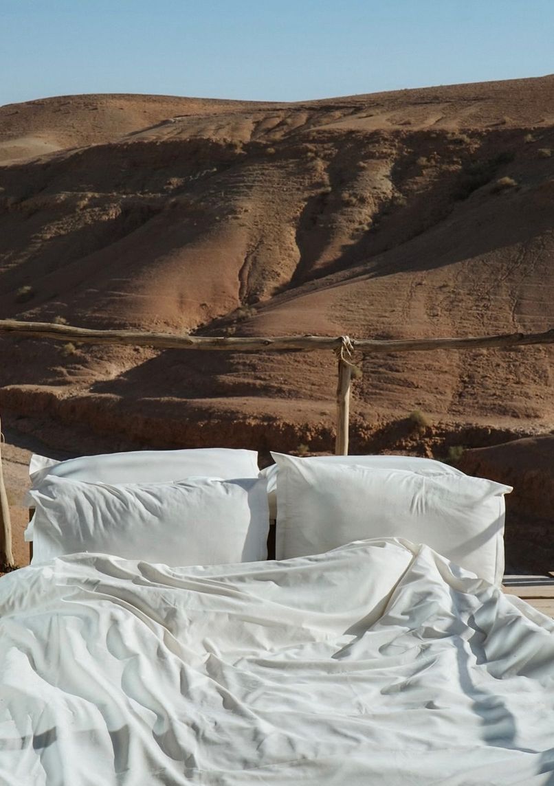 Camp de luxe dans le désert d'Agafay, à 50 min de Marrakech. 600 acres de paysage désertique avec tentes luxueuses et villas. Piscines, jacuzzi, activités d'aventure et cuisine raffinée dans un cadre spectaculaire de canyons et dunes.