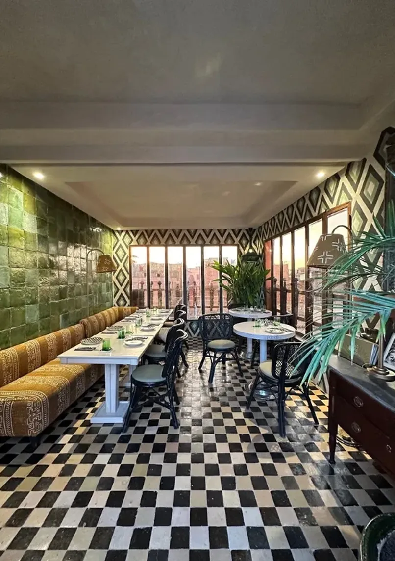Restaurant de fusion africaine dans la médina de Marrakech, alliant traditions berbères et innovations culinaires. Menu créatif incluant un burger de chameau et une rfissa revisitée, servis dans un cadre élégant avec terrasse panoramique.