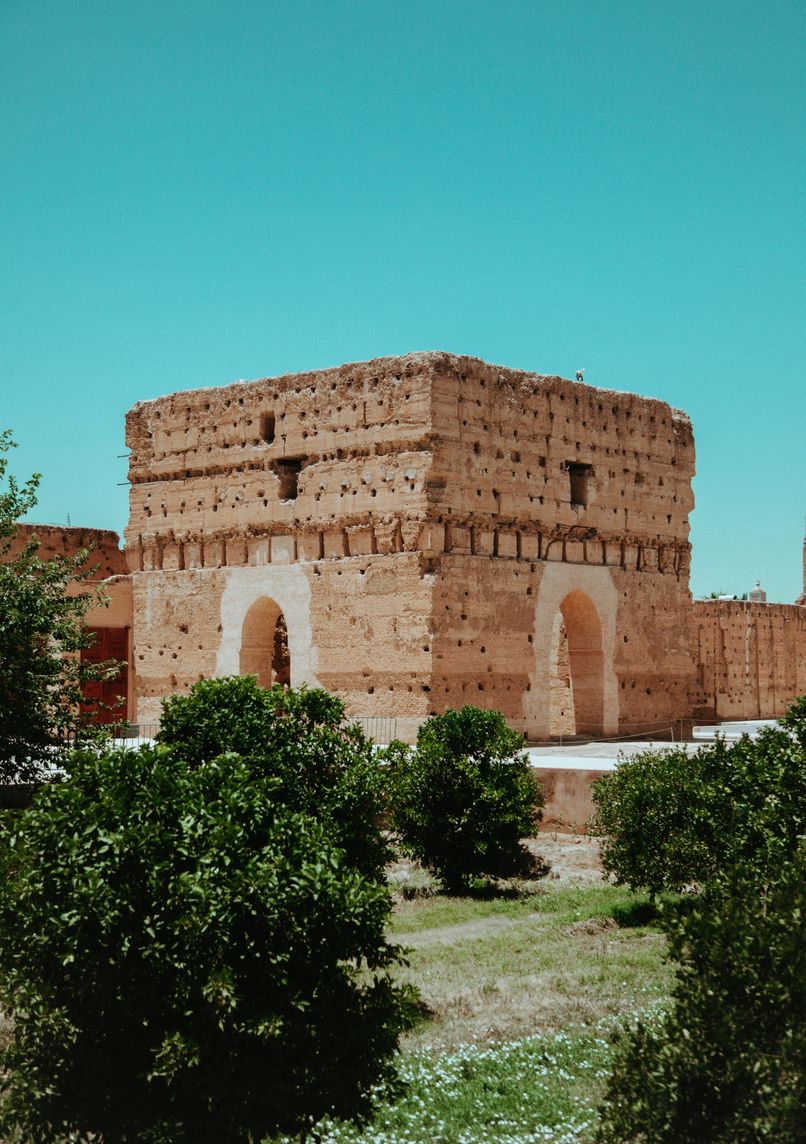 Palais du XVIe siècle aux ruines majestueuses, offrant un aperçu de l'architecture saadienne. Vastes cours, bassins et jardins témoignent de son ancienne splendeur. Site archéologique unique avec tunnels souterrains et vues panoramiques sur Marrakech.