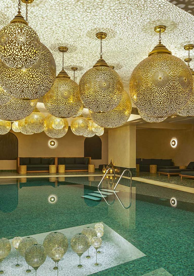 Spa de 1200 m² mêlant cultures marocaine et thaïlandaise. Offre hammams, massages et soins dans 11 cabines équipées. Piscine intérieure chauffée de 95 m² et espaces de relaxation avec produits 100% naturels.