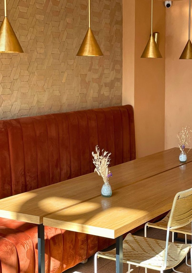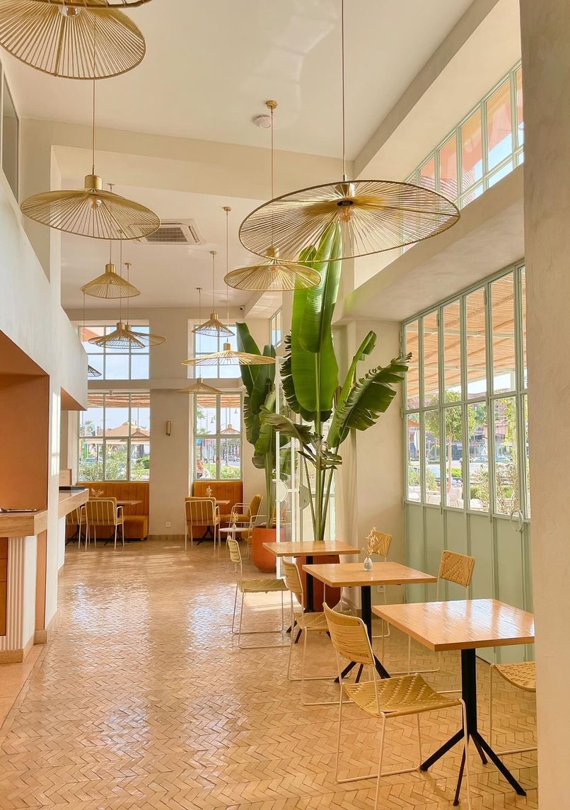 Café-restaurant moderne face à la gare de Marrakech. Menu varié alliant cuisine internationale et marocaine, avec options santé. Espace polyvalent pour petit-déjeuner, repas et travail, doté d'une terrasse et d'un intérieur minimaliste climatisé.