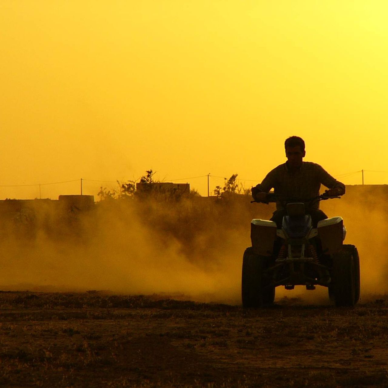 Que ma ville est belle. On longe d'abord succinctement un oued tari par la saison, puis on se lance à l'assaut de cette étendue désertique bordée de palmiers. Nous partons en file indienne, comme nous l’a montré au préalable le moniteur, et avec une certaine distance entre chaque quad (pour éviter d'avaler trop de poussière). Étant en deuxième position lors de cette expérience, je vous recommande vivement de suivre cette consigne ! Laissez le meneur prendre de l'avance, et offrez vous quelques accélérations de temps à autres. Ça évite quelques désagréments et vous laisse profiter des paysages.