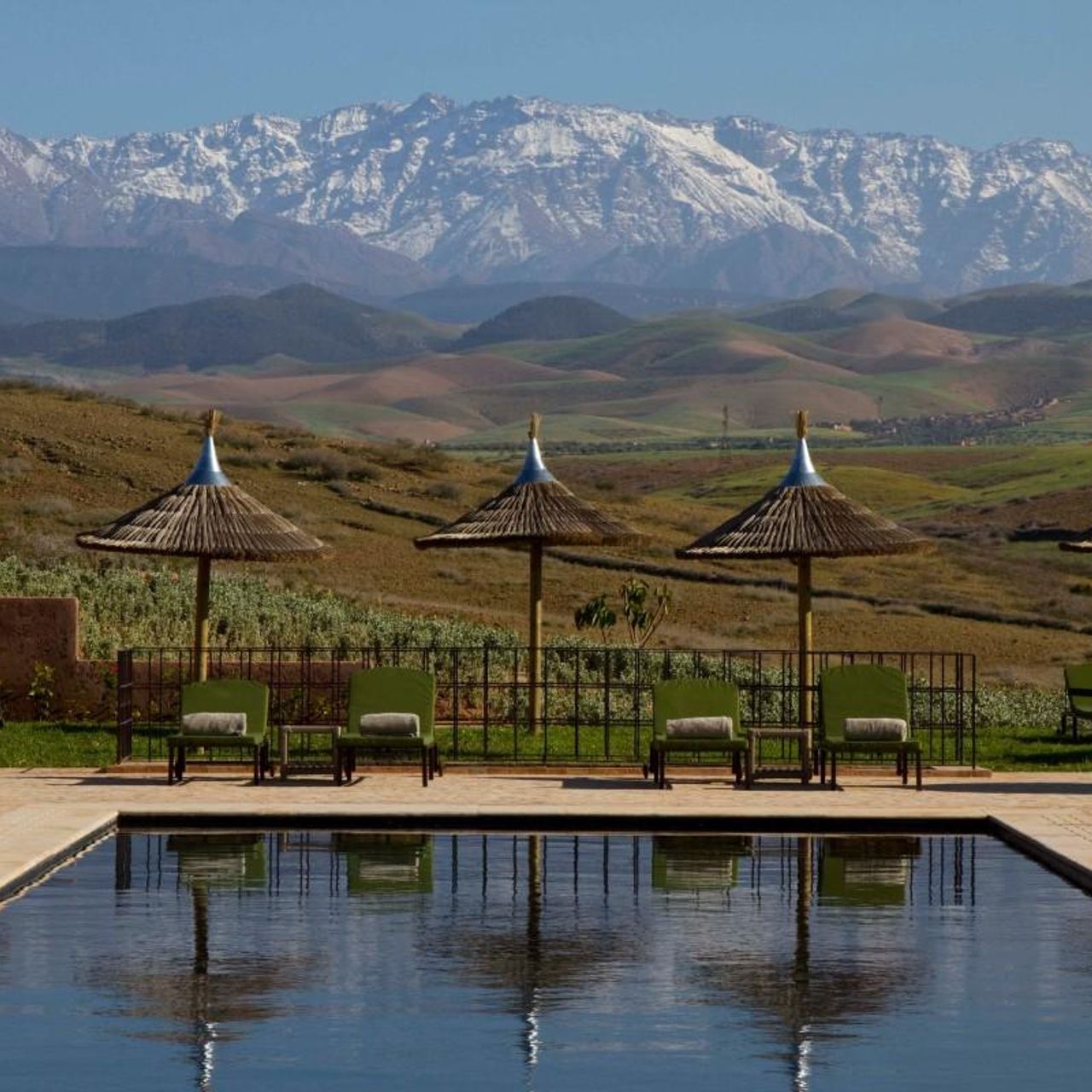 Au Palais Paysan, rien n’est négligé pour que l’hôtel demeure en osmose avec son environnement. Les 16 chambres avec balcon se hissent au cœur d’un jardin luxuriant peuplé d’arbres fruitiers et de roses, une vue exceptionnelle sublimée par les chaînes de l’Atlas en toile de fond. Côté décoration, le métissage des styles apporte un caractère unique aux chambres. Zelliges, fauteuils vintage, osier… les inspirations d’ici et d’ailleurs cohabitent harmonieusement et en toute sobriété.