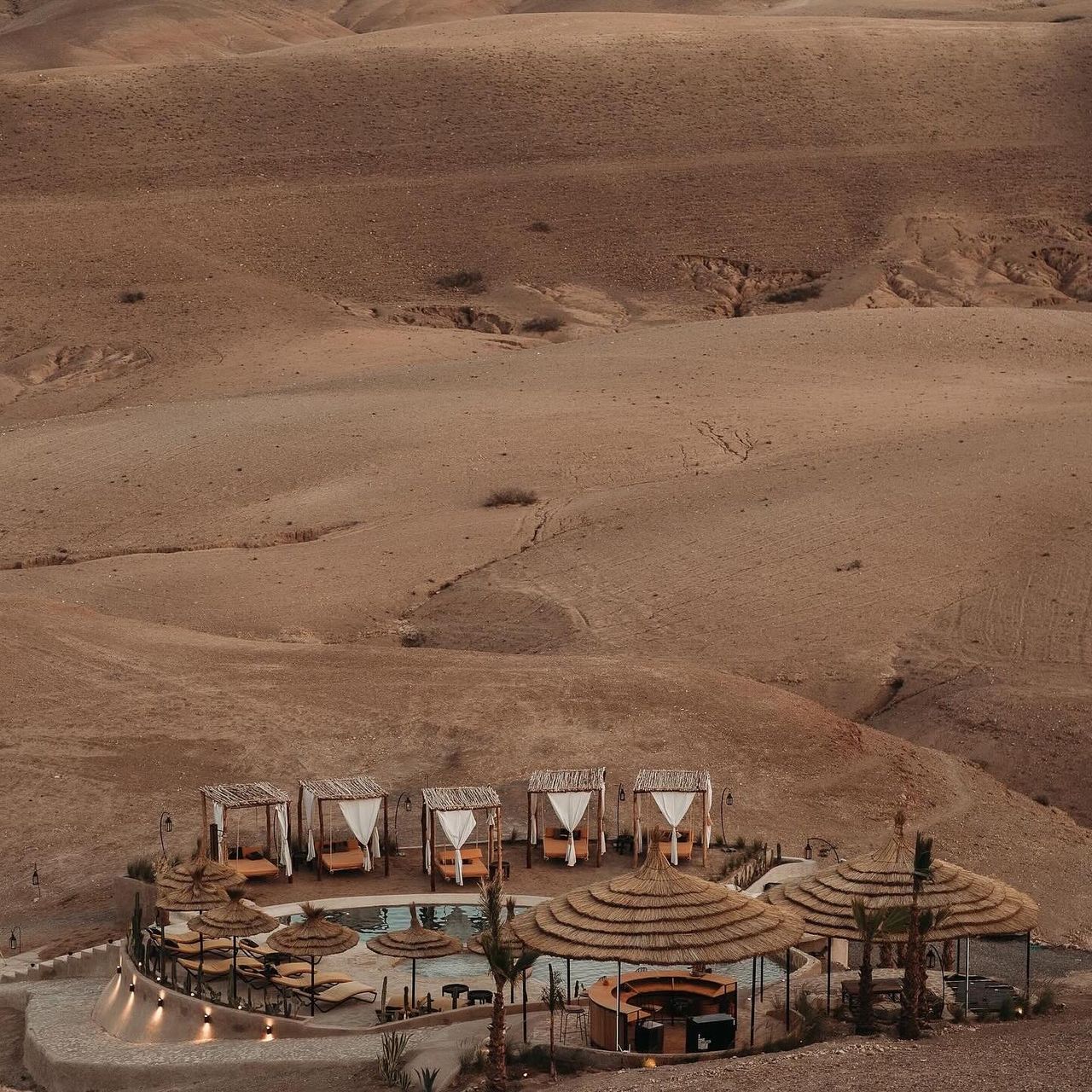 Mettez le cap vers le désert d’Agafay et ses étendues arides et rocailleuses. Vous y vivrez ce sentiment d’immensité propre aux paysages désertiques et l’enchantement de la découverte d’une oasis enchantée. Eucalyptus, vignes et oliviers forment une végétation luxuriante et surprenante.