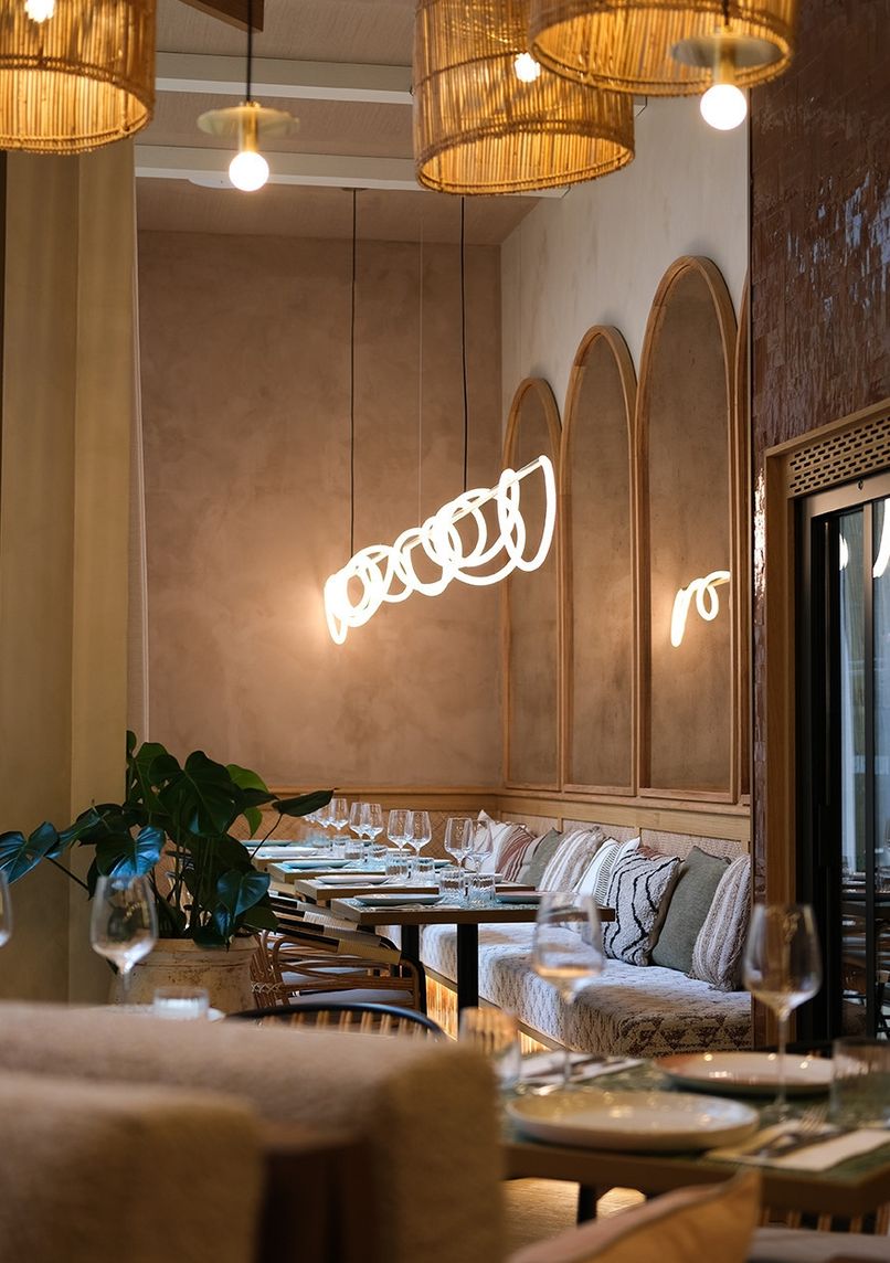 Bloom Garden, situated within the Bloom House hotel, presents a distinctive fusion of Mediterranean and Moroccan design elements: