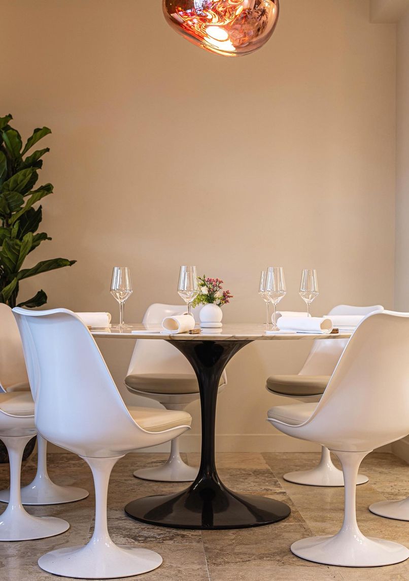 Michelin-starred restaurant opened in 2023, featuring a three-level layout with open kitchen, dessert bar, and wine room. Chef Flavio Lucarini offers contemporary gourmet cuisine with Italian influences across 3, 4, or 6 course menus.