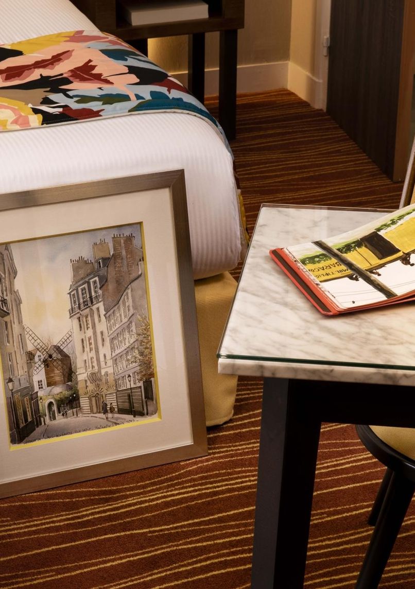 - Views of Paris from select rooms, including the Eiffel Tower or an old windmill